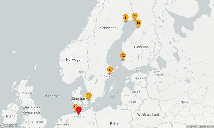 An Häfen wie Hamburg, Luleå und Kemi haben Sie die Gelegenheit, die Region auf eine besondere Weise kennenzulernen und Neues zu entdecken.