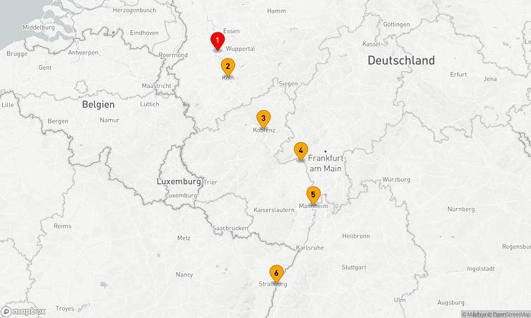 Auf der Route besuchen Sie unter anderem die Häfen von Düsseldorf, Koblenz und Mainz, um das besondere Flair und die Sehenswürdigkeiten der jeweiligen Umgebung zu erleben.