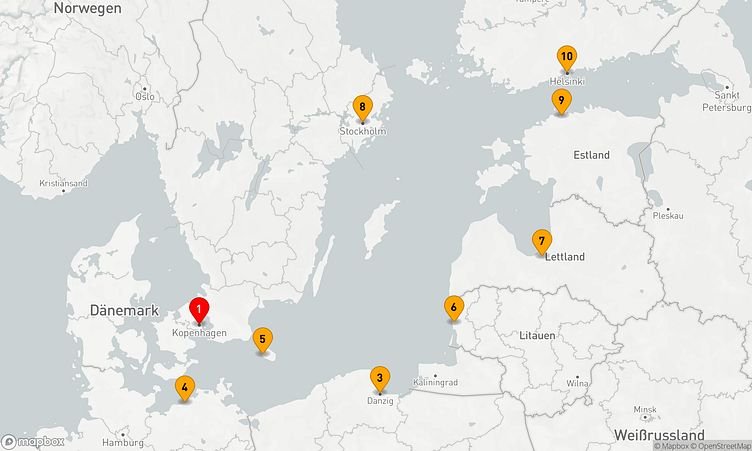 Während der Route halten Sie unter anderem in den Häfen von Kopenhagen, Warnemünde und Riga, um in das Flair und die Besonderheiten der Umgebung einzutauchen.