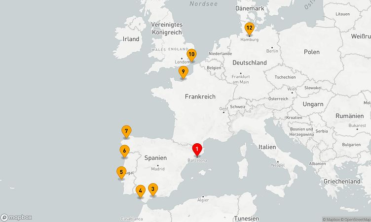 Während Ihrer Reise besuchen Sie unter anderem die Häfen von Barcelona, Cádiz und La Coruña, die Ihnen spannende Einblicke und einzigartige Entdeckungen bieten.