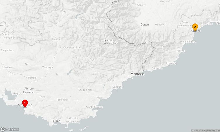 Ihre 1-tägige Reise startet am 29. Mai 2027 in Marseille (Frankreich) und endet am 30. Mai 2027 im Zielhafen Savona (Italien).