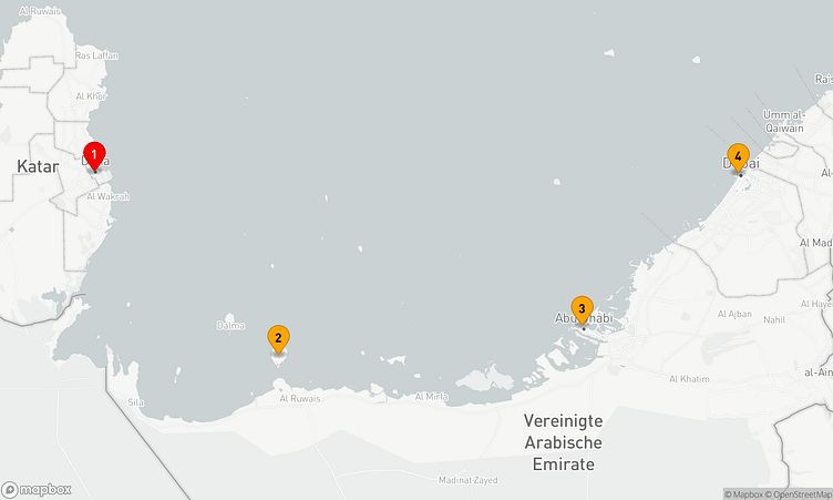 Während der Reise besuchen Sie unter anderem die Häfen von Doha, Sir Bani Yas und Dubai, die Ihnen spannende Eindrücke und einzigartige Entdeckungen bieten.