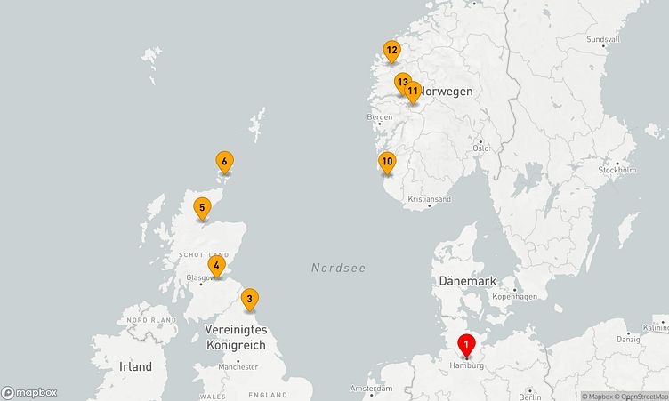 Die Reiseroute beginnt am 09. Juli 2027 in Hamburg (Deutschland) und führt sie vom 09. Juli 2027 bis zum 18. Juli 2027 (9 Tage) nach Hamburg (Deutschland).