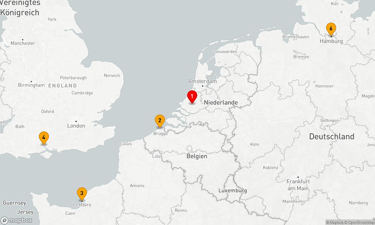 Während der Route halten Sie unter anderem in den Häfen von Rotterdam, Zeebrügge und Southampton, um in das Flair und die Besonderheiten der Umgebung einzutauchen.