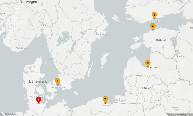 Während der Route halten Sie unter anderem in den Häfen von Kiel, Riga und Helsinki, um in das Flair und die Besonderheiten der Umgebung einzutauchen.