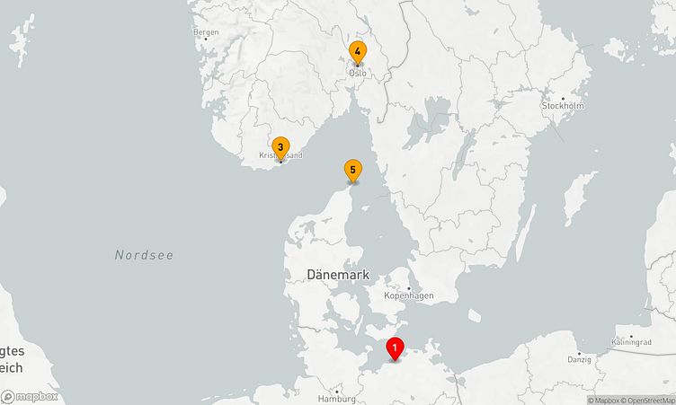 Ihre Route führt Sie unter anderem zu den faszinierenden Häfen von Warnemünde, Kristiansand und Skagen, wo Sie die Atmosphäre und das Leben vor Ort spüren können.