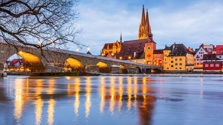 Im Herzen Bayerns wartet Regensburg als UNESCO-Welterbe-Stadt auf Sie. Die Stadt blickt auf eine mehr als 2.000-jährige Geschichte zurück, die nicht nur so schon beeindruckt, sondern auch zahlreiche Sehenswürdigkeiten und echte Schätze hinterlassen hat. Allein die Altstadt von Regensburg im Zentrum spricht Bände: Sie ist insbesondere vor den Weltkriegsbomben verschont geblieben, daher erstaunlich gut erhalten und besticht mit Highlights wie der einzigartigen Architektur oder dem Dom St. Peter, der sich durch diverse bauliche Alleinstellungsmerkmale wie die mittelalterlichen Glasfenster hervorhebt. Doch auch eine große Zahl an traditionellen Restaurants, Cafés, Kunstgalerien und Antiquitätenhändlern zeichnen das Bild der Altstadt. Viele weitere Höhepunkte, wie die über 300 Meter lange Steinerne Brücke mit ihren 16 Segmentbögen, das Alte Rathaus aus dem 13. Jahrhundert oder die Porta Praetoria, sorgen für eine einmalige architektonische Vielfalt in Regensburg – ebenso wie für besondere Fotomotive. Das Beste: Die Regensburger Anlegestelle für Kreuzfahrtschiffe ist nur einen Katzensprung vom Stadt..zentrum entfernt.