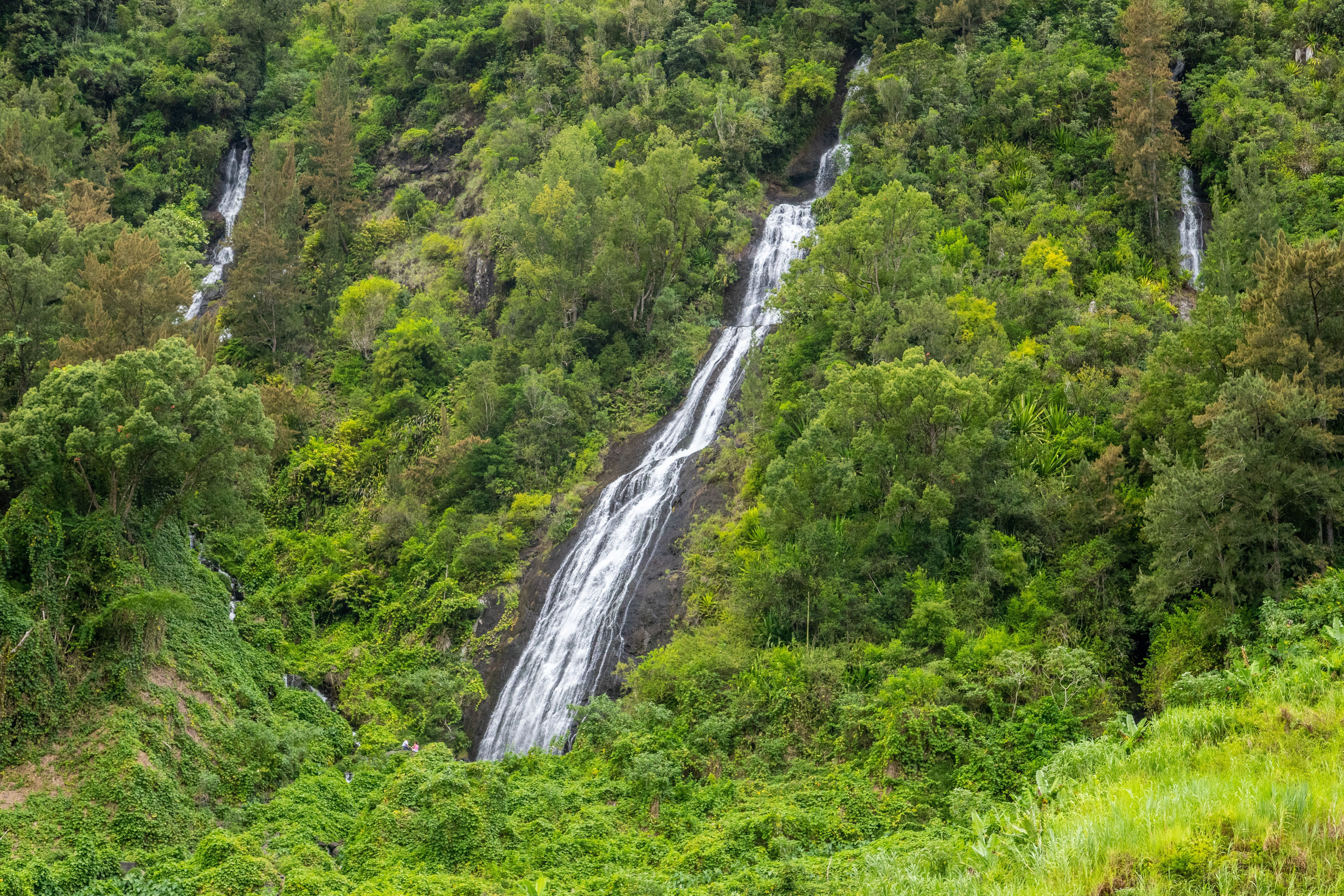 Üppige Vegetation und malerische Wasserfälle im grünen Talkessel