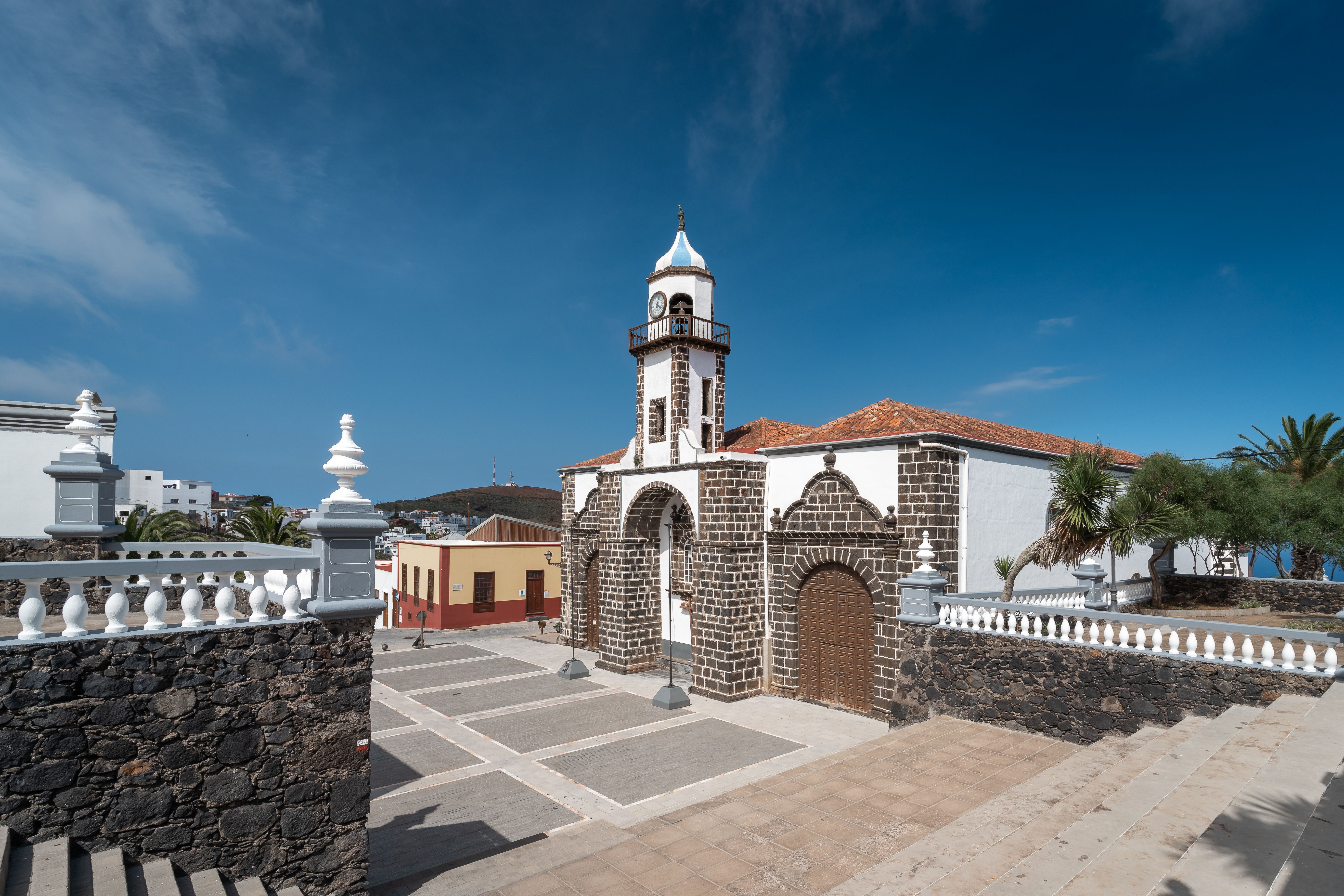 Entdecken Sie auf einer Inselrundfahrt die Sehenswürdigkeiten El Hierros. Besuchen Sie den Aussichtspunkt El Mirador de la Peña auf einem atemberaubenden Steilfelsen. Hier liegt Ihnen das El Golfo-Tal zu Füßen und bietet eine der schönsten Aussichten auf die Insel. Der Mirador ist ein Werk des kanarischen Architekten César Manrique und wurde zu einem geschützten Kulturgut erklärt. Bestaunen Sie El Garoé, den wahrscheinlich legendärsten Baum der ganzen Insel. Dieser große Baum, der dank seiner Fähigkeit, Wasser zu filtern, die Einwohner vor einer großen Dürre bewahrte, steht in San Andrés. Erkunden Sie den Laurisilva-Wald und machen Sie Halt für ein Mittagessen, bei dem Sie ein lokales Gericht probieren. Verbringen Sie Zeit an der Küste, und genießen Sie den atemberaubenden Blick auf Punta Grande. Besuchen Sie die Kirche La Concepcion in Valverde, bevor es wieder zurück zum Puerto de la Estaca Hafen geht.