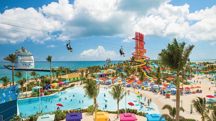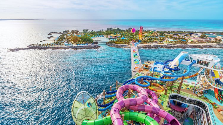 Ein Highlight von CocoCay auf den Bahamas ist der Thrill Waterpark, der mit aufregenden Wasserrutschen, darunter die höchste Wasserrutsche Nordamerikas, und einem riesigen Wellenbad aufwartet. Dieser Wasserpark bietet Spaß und Spannung für die ganze Familie.