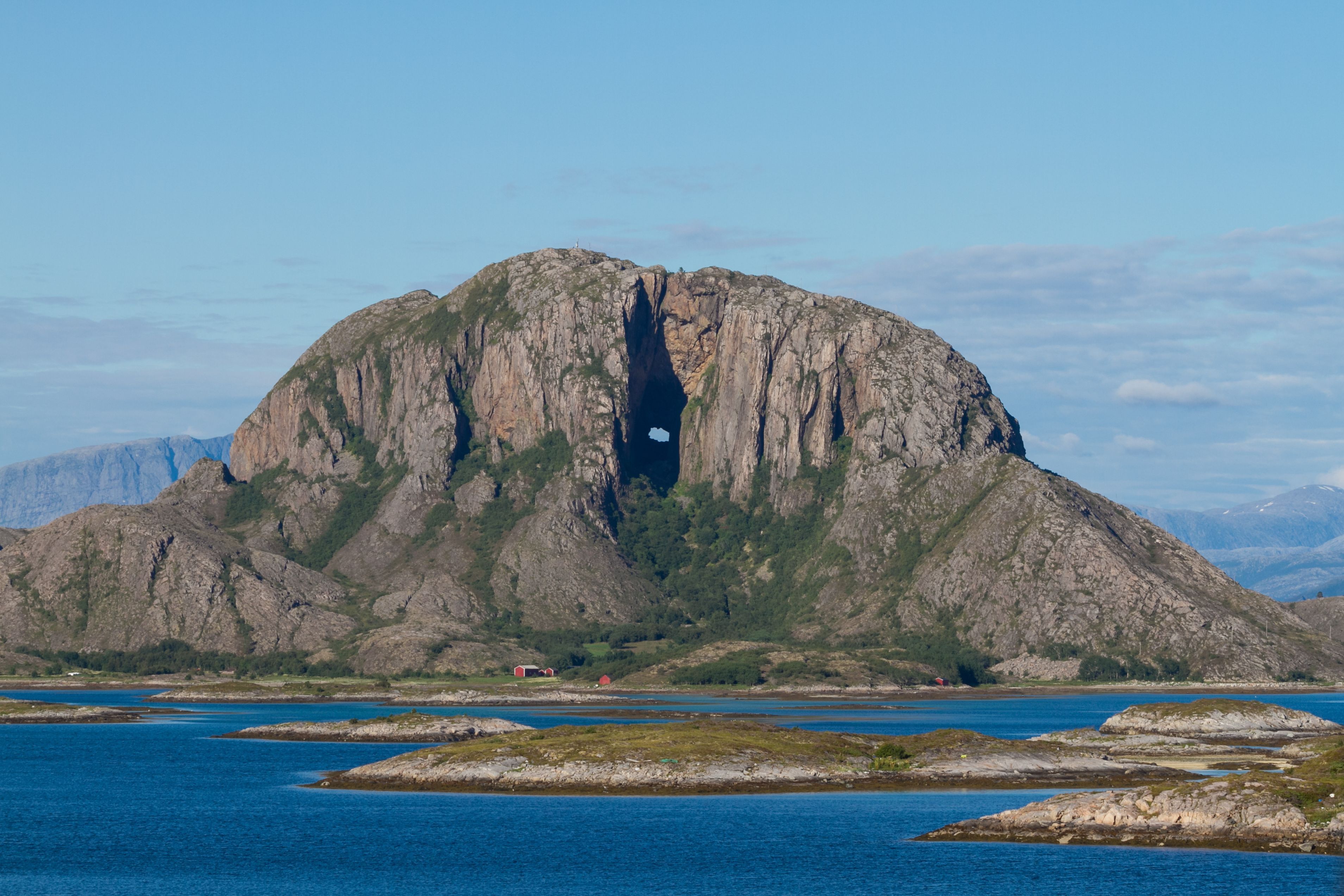 Bronnoysund ist eine kleine norwegische Küstenstadt in der Region Nordland im nördlichen Norwegen. Die charmante Stadt liegt an der Westküste der Insel Brønnøya und ist bekannt für ihre atemberaubende natürliche Schönheit. Die Geschichte von Bronnoysund ist reich und vielfältig, geprägt von ihrer geographischen Lage und den kulturellen Einflüssen der Region. Bronnoysund war schon in der Steinzeit besiedelt, wie archäologische Funde belegen. Im Mittelalter entwickelte sich die Stadt zu einem wichtigen Handels- und Verkehrsplatz. Die Region profitierte von ihrer strategischen Lage an der Küste und wurde zu einem Knotenpunkt für Handel und Fischerei - ein bedeutendes Zentrum für den Fischfang und die Fischverarbeitung. Die Fischerei, insbesondere der Kabeljau, spielte eine entscheidende Rolle in der lokalen Wirtschaft.
