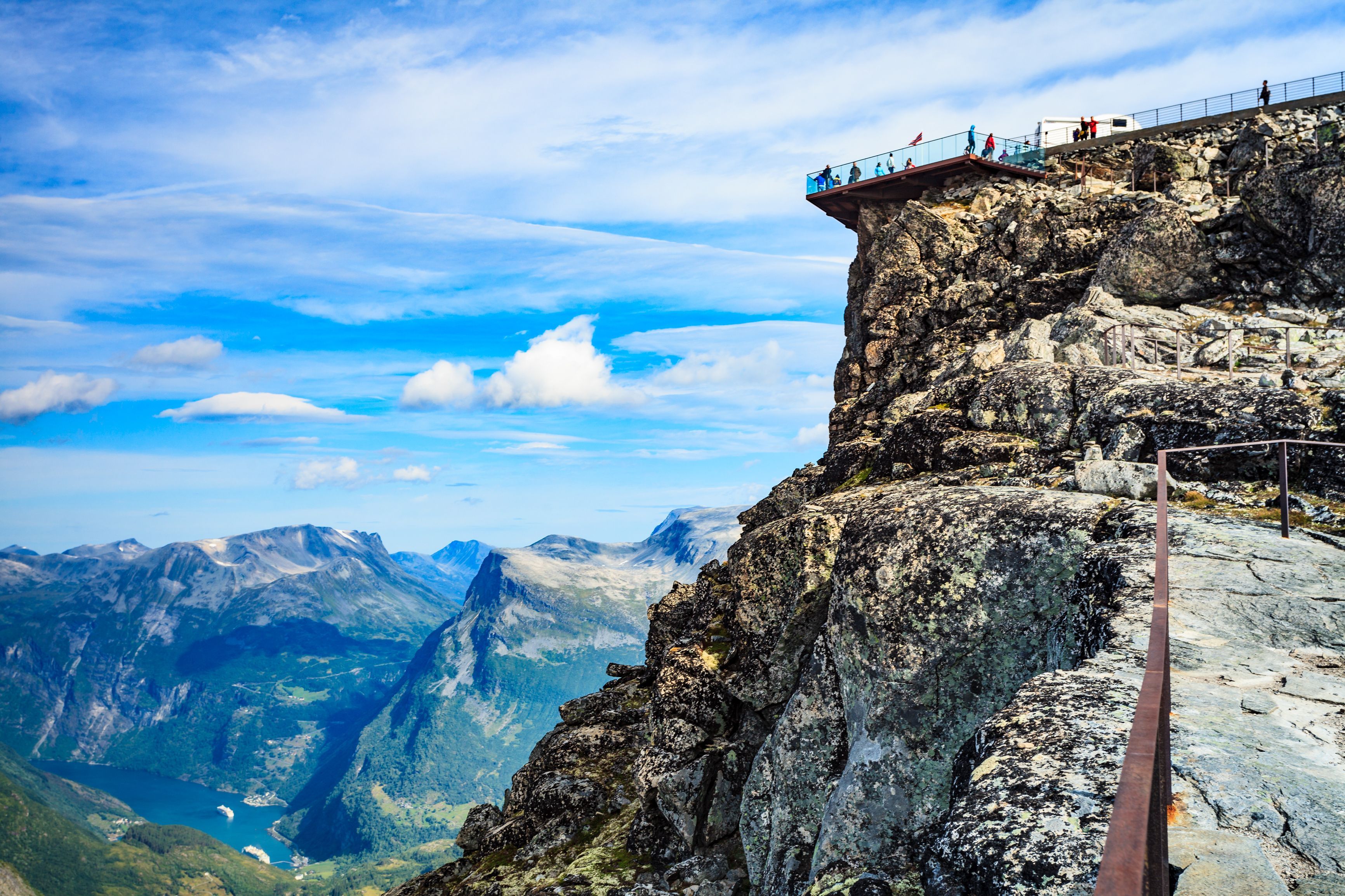Auch bekannt als der Adlerweg, ist eine spektakuläre Aussichtsplattform am Geirangerfjord in Norwegen. Diese Plattform bietet einen der atemberaubendsten Ausblicke auf den Fjord, die umliegenden Berge und den berühmten Wasserfall „Die Sieben Schwestern“. Sie liegt an der Straße „Geiranger - Trollstigen“, die für ihre dramatischen Kurven und atemberaubende Landschaft bekannt ist.