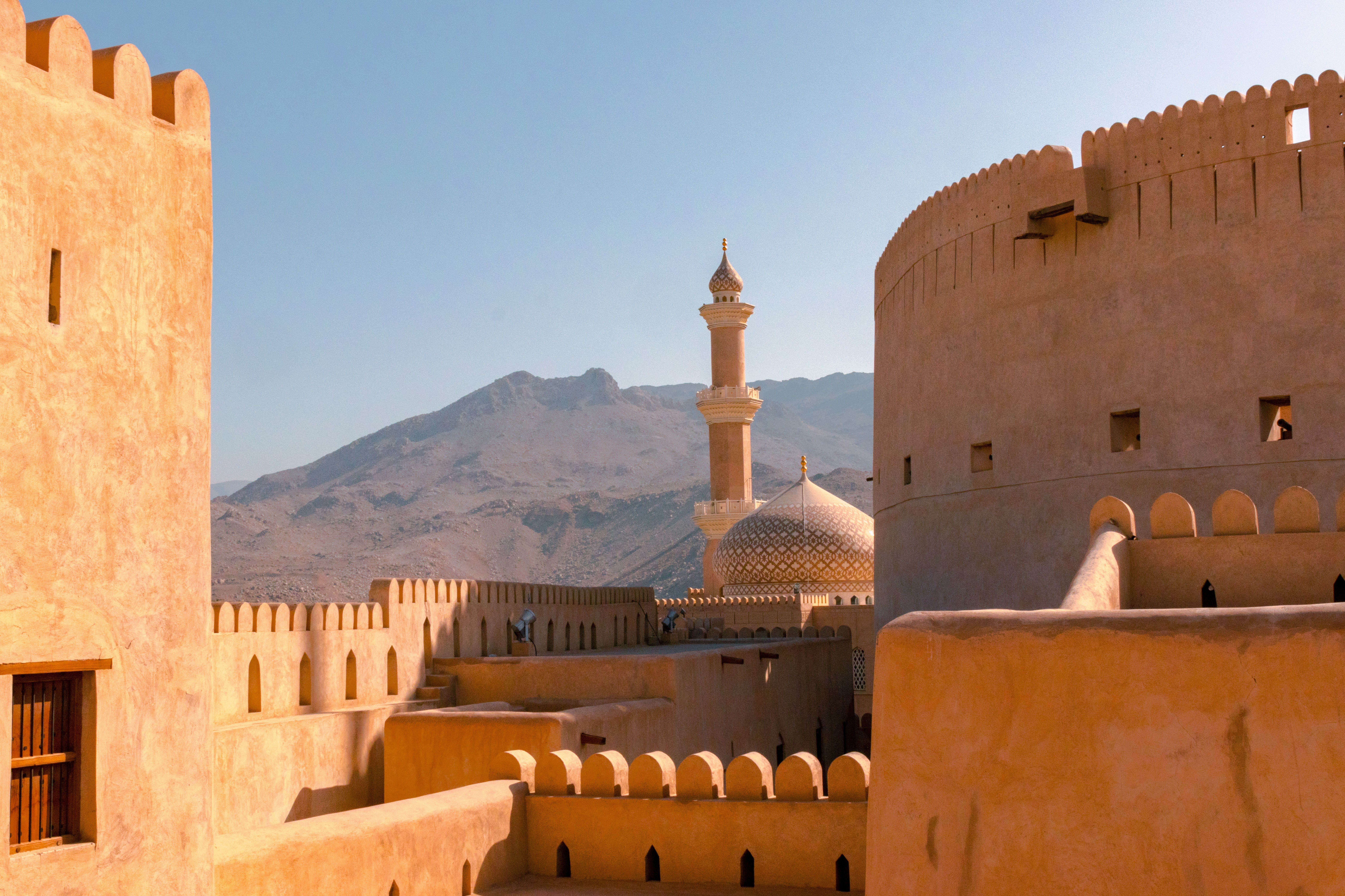 Abu Dhabi streben nach architektonisch westlichen Maßstäben und demonstrieren ihre Pracht und Reichtum durch eine überwältigende Skyline mit Hochhäusern. Muscat hingegen bewahrte das traditionelle Antlitz des