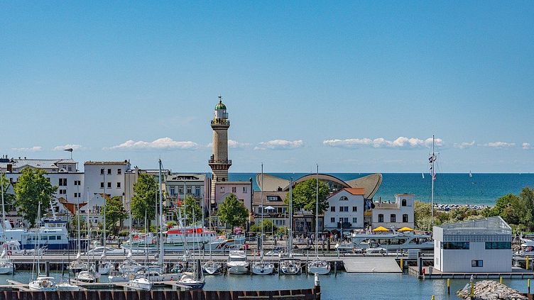 Warnemünde, das seinen Namen der einzigartigen Lage an der Mündung der Warnow in die Ostsee verdankt, gilt als bedeutendes maritimes Tor zur Welt. Denn Rostock-Warnemünde ist der größte deutsche Kreuzfahrthafen direkt am Meer: Von hier aus starten viele Kreuzfahrtschiffe zu verschiedenen Zielen in der Ostsee sowie zu anderen europäischen Häfen. Darüber hinaus ist der Hafen ein wichtiger Umschlagplatz für Fracht und ein Drehkreuz für Fährverbindungen.