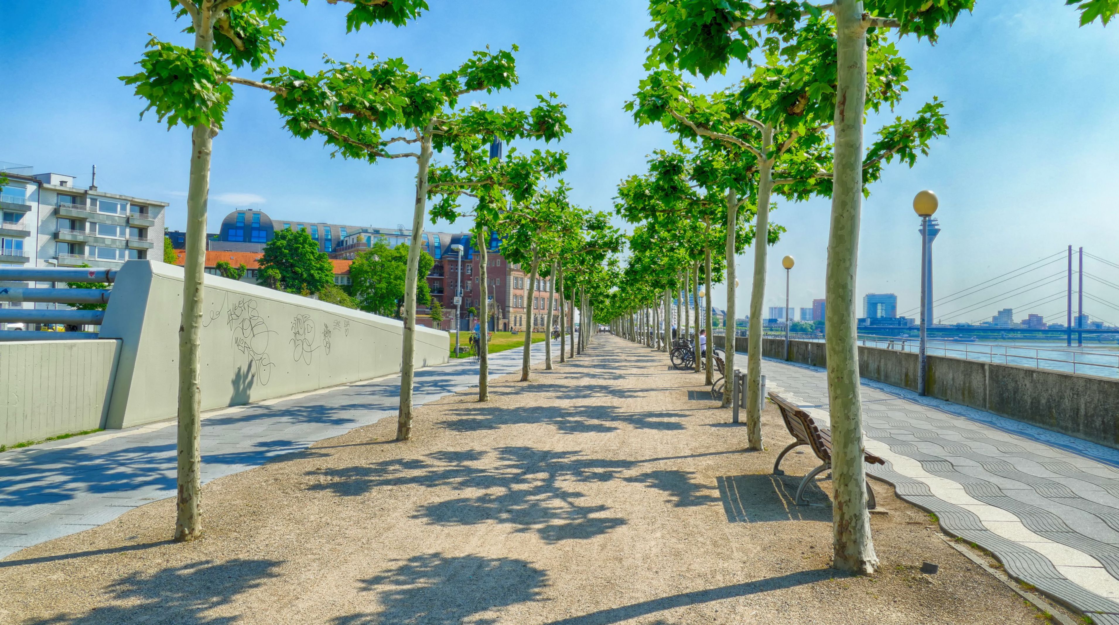 Hat man bei einer Kreuzfahrt nach Düsseldorf mit der Liegestelle besonders Glück, steigt man direkt am Highlight der Stadt, an der Rheinuferpromenade aus, die sich bis hin zum Medienhafen mit seinem unverkennbaren, 168 Meter hohen Rheinturm zieht. Doch auch die meisten anderen Anlegestellen liegen sehr zentral, nur wenige Gehminuten von der Promenade entfernt. Beste Stimmung, Live-Musik und leckere Drinks in verschiedenen Restaurants, Cafés und Bars warten hier auf Sie.
