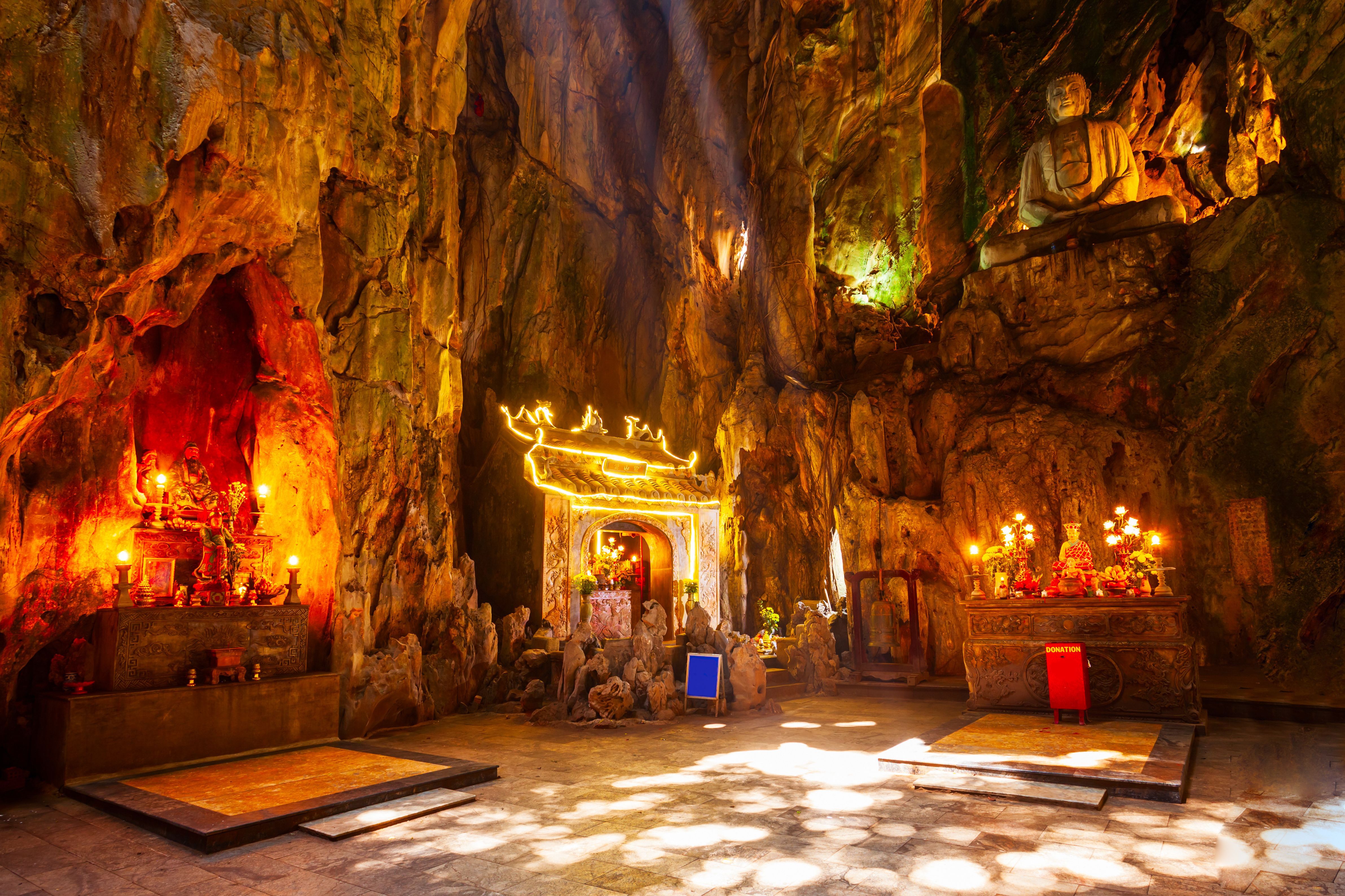 Wahrzeichen der Stadt sind die alles überragenden Marmorberge, in denen Sie zahlreiche Höhlen und heilige Stätten entdecken können. Hier finden Sie auch die riesige, weiße Marmorstatue der Göttin Guanyin. Genießen Sie in Da Nang Essen und Trinken, denn die Küstenmetropole ist für ihre kulinarischen Leckerbissen bekannt. Probieren Sie den gefüllten Pfannkuchen Banh Xeo, oder die Fischnudelsuppe Bun Cha Ca. Neben den beeindruckenden Tempeln, Pagoden und weiteren historischen Bauten ist Da Nang auch ein modernes Wirtschaftszentrum mit Wolkenkratzern und riesigen Einkaufszentren.
