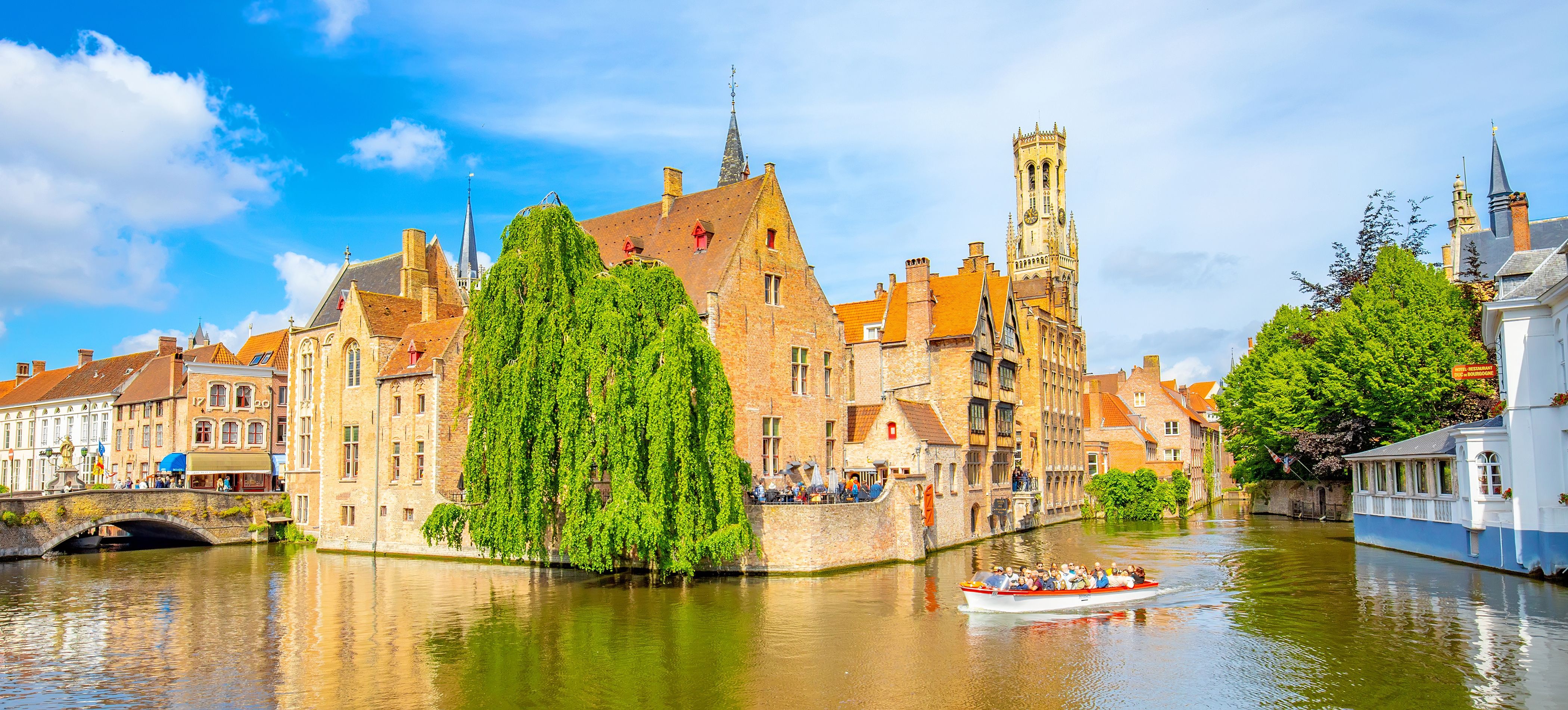 Erkunden Sie die Kanäle in einer romantischen Bootsfahrt, besichtigen Sie das beeindruckende Belfried oder probieren Sie die unglaublich guten belgischen Pralinen.