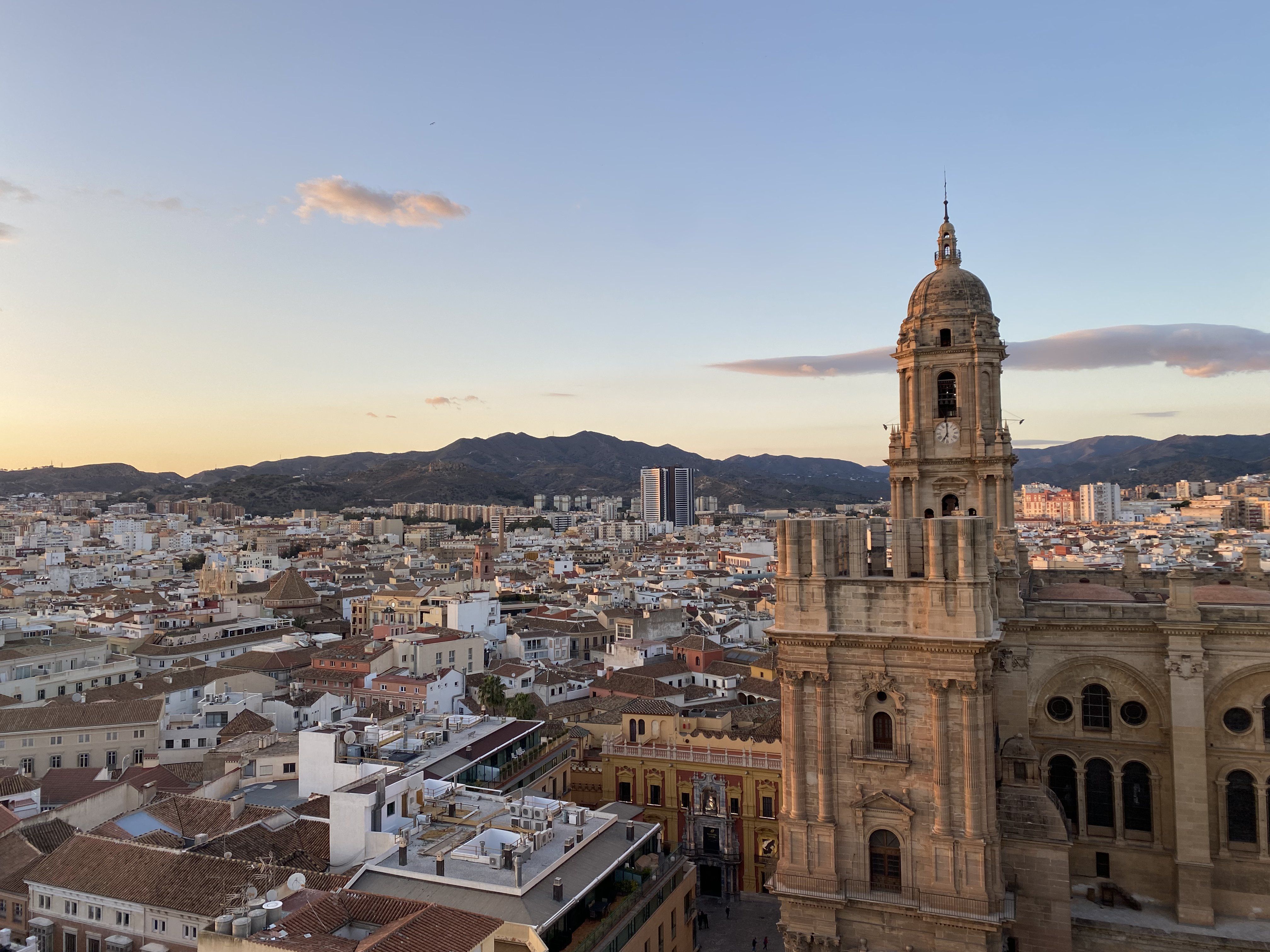 Vom Hafen aus bietet sich in Richtung Zentrum ein wunderbarer Blick auf Unmengen an Palmen dank des Paseo del Parques, die maurische Festung Alcazaba und dem ehemaligen Wachturm Gibralfaro. Die Ruinen wirken besonders in der Abenddämmerung herrlich mystisch, wenn sie von vielen kleinen Lichtern beleuchtet werden.