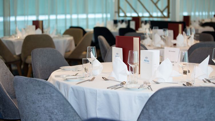 Mit einem Frühstücksbuffet im Restaurant an Bord starten Sie gestärkt in den Tag. Zum Mittag- und Abendessen dürfen Sie sich bei mehrgängigen Menüs bedienen lassen.