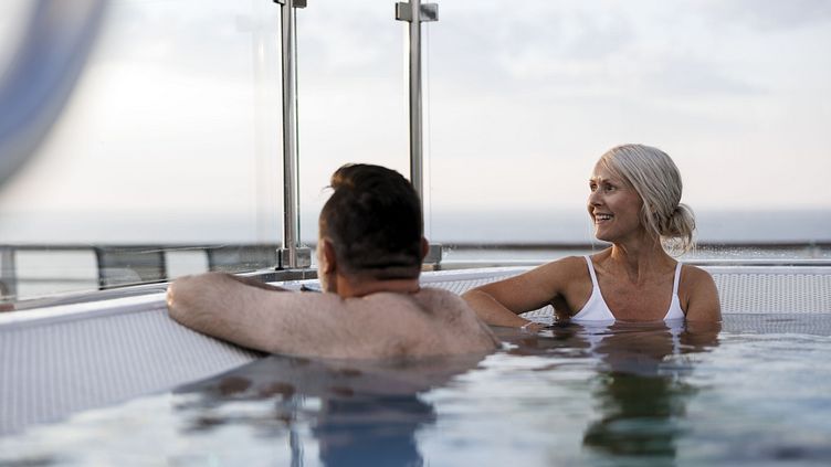 Das Wellness-Angebot umfasst eine Herrensauna sowie eine Damensauna inkl. Umkleide und Dusche. Auf dem Achterdeck genießen Sie zudem zwei Whirlpools. Gerade bei winterlichen Temperaturen sitzt es sich mit Wollmütze dort prickelnd warm, während die schneebedeckten Berge vorbeiziehen.